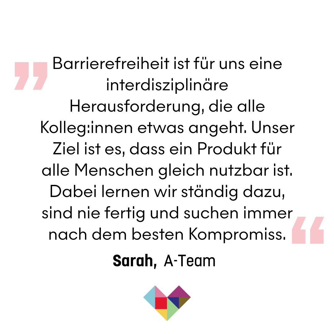 Maßnahmen: laufendes und frühzeitiges Einbeziehen der Diversity-Expert:innen als beratende Instanz in interne Prozesse und Projekte, regelmäßige Updates und Kommunikationsformate, Integration von DE&I-Standards bei der Auswahl von Dienstleister:innen und Projekten